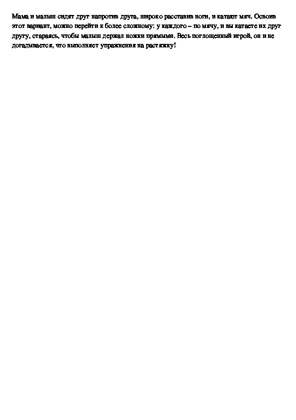 бросал самолет перед собой.Мама и малыш сидят друг напротив друга, широко расставив ноги, и катают мяч. Освоив
