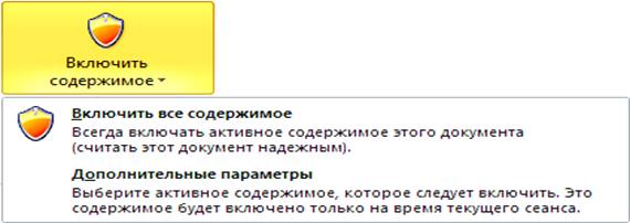 При повторном открытии такой базы данных будет выводиться запрос по поводу отключения опасного содержимого.