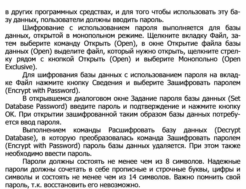 в других программных средствах, и для того чтобы использовать эту ба- зу данных, пользователи должны вводить пароль.