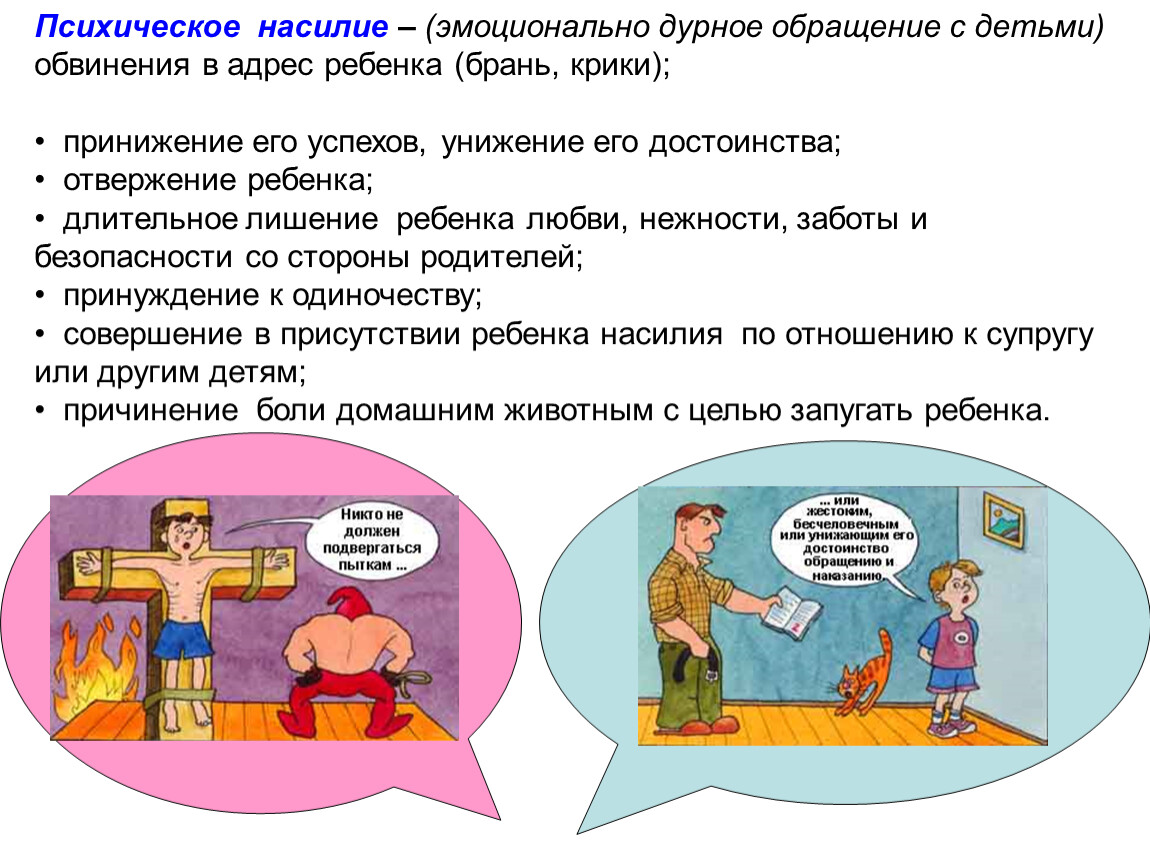Психическое насилие – (эмоционально дурное обращение с детьми)