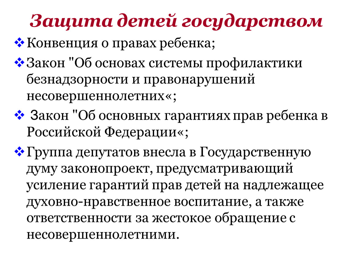 Закон "Об основных гарантиях прав ребенка в Российской Федерации«;