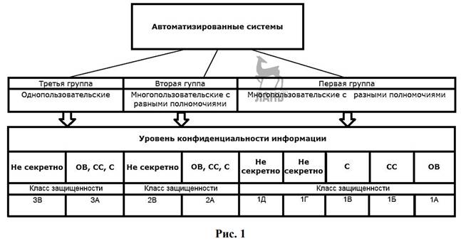 Первая группа — определяет многопользовательские АС, где одновременно хранятся и (или) обрабатываются данные разных уровней конфиденциальности, и не все пользователи имеют доступ к ней. Группа имеет пять классов — 1Д, 1Г, 1В, 1Б, 1А.