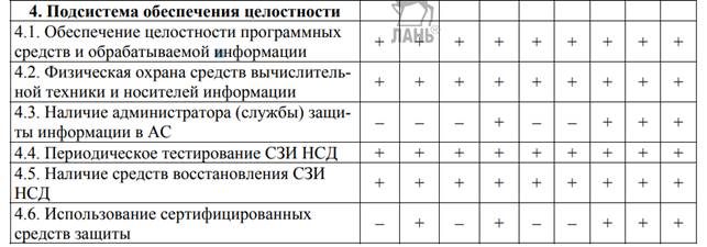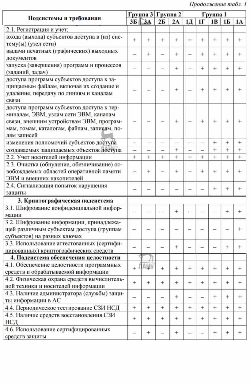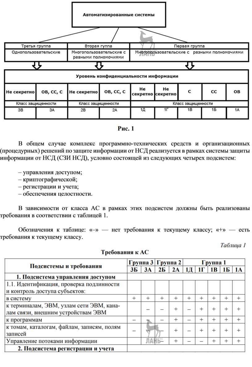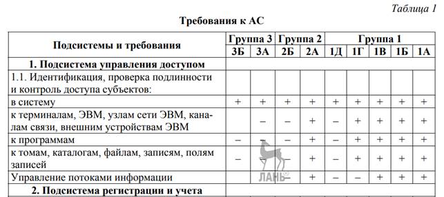 В зависимости от класса АС в рамках этих подсистем должны быть реализованы требования в соответствии с таблицей 1.