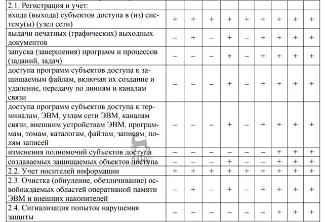 Каждый класс имеет минимальный набор требований по защите. Классы можно