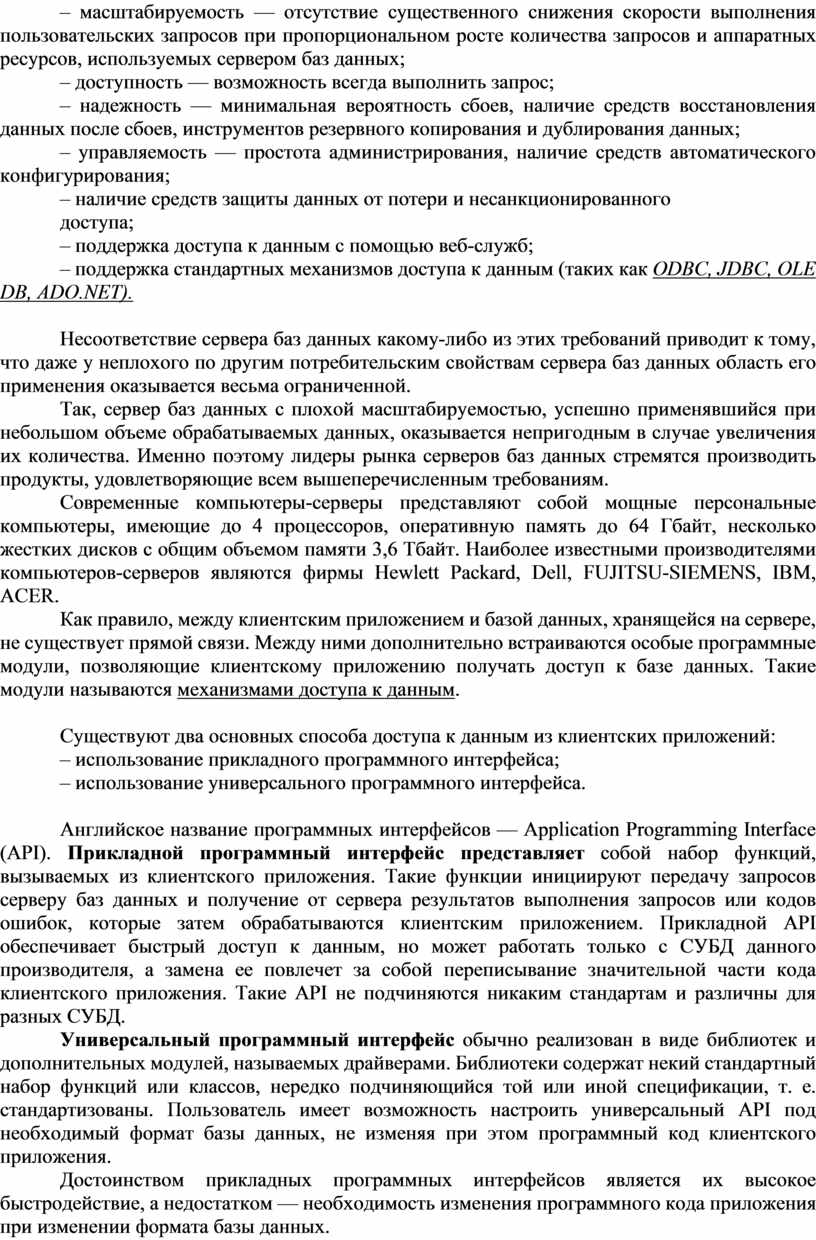 потребительским свойствам сервера баз данных область его применения оказывается