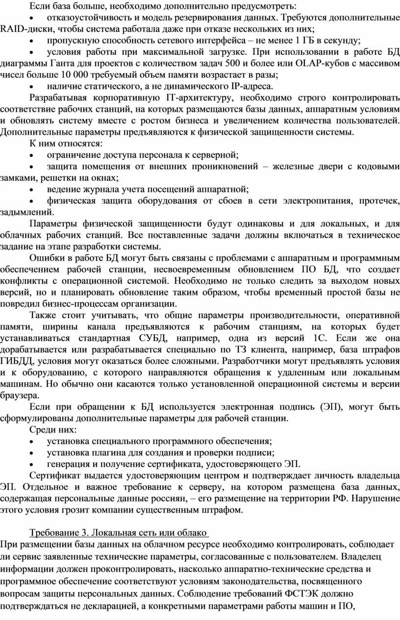 Требования информационной и физической
