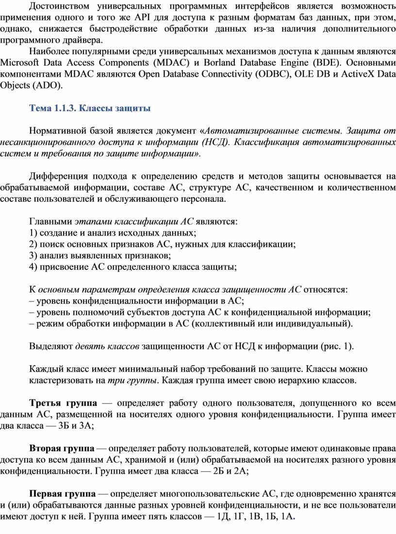 Тема 1.1.3. Классы защиты