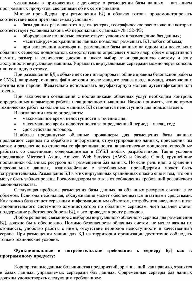 Существуют определенные условия безопасности серверов баз данных, которые нужно учитывать при разработке архитектуры системы.
