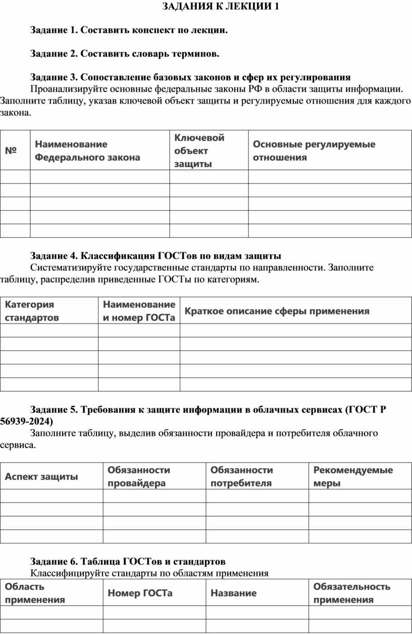 Задание 5. Требования к защите информации в облачных сервисах (ГОСТ Р 56939-2024)