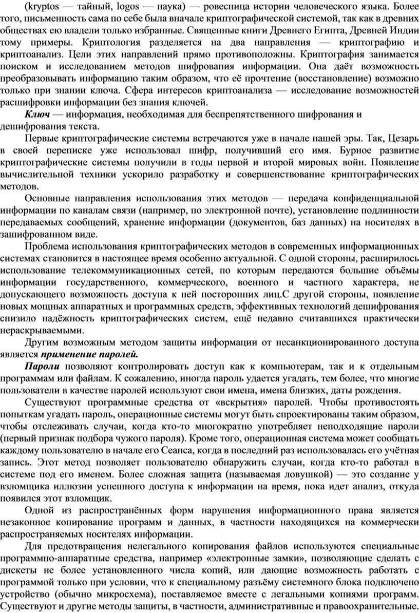 Многие методы защиты информации от несанкционированного (нелегального) доступа возникли задолго до появления компьютеров.