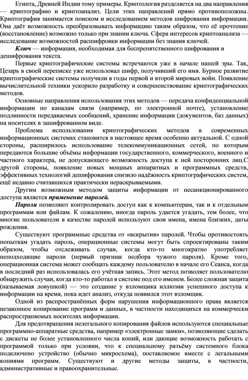 Многие методы защиты информации от несанкционированного (нелегального) доступа возникли задолго до появления компьютеров.