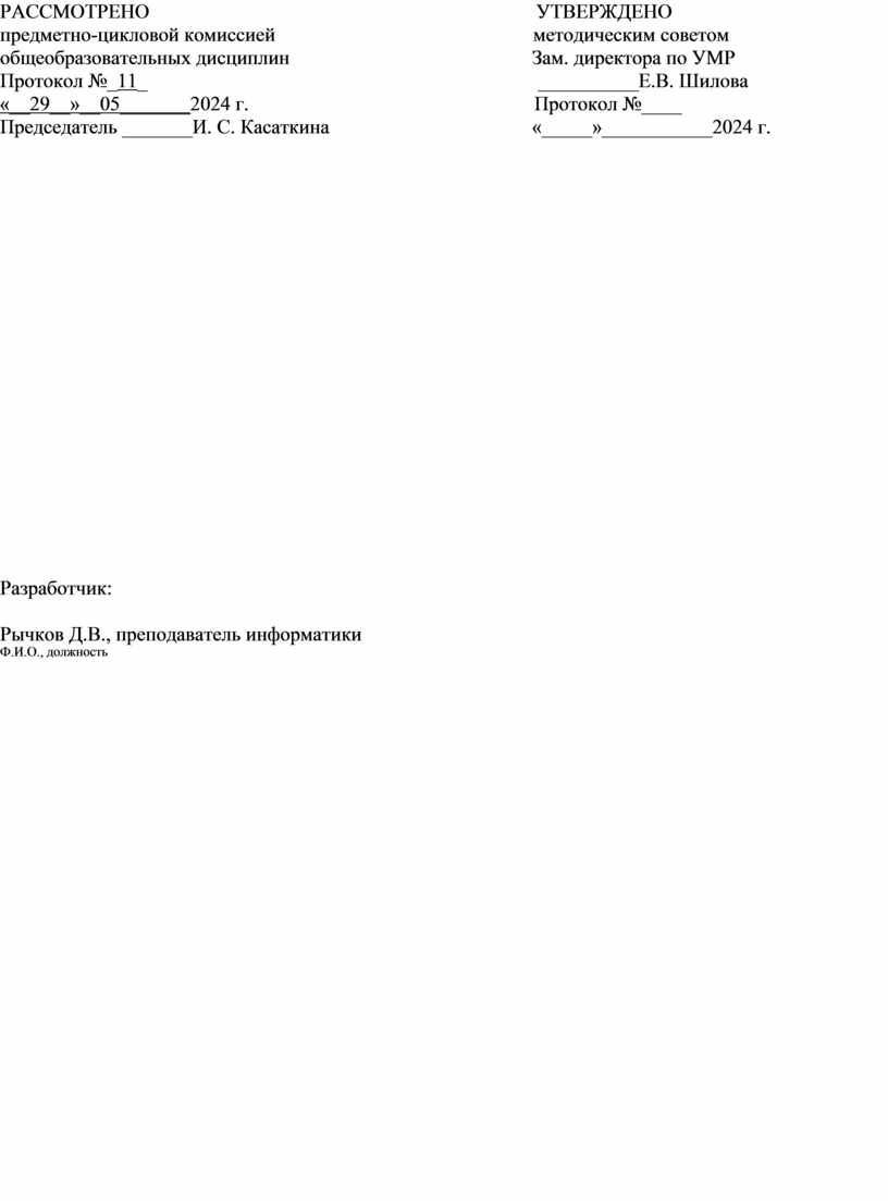Протокол №_11_ __________Е.В. Шилова «__29__»__05_______2024 г. Протокол №____