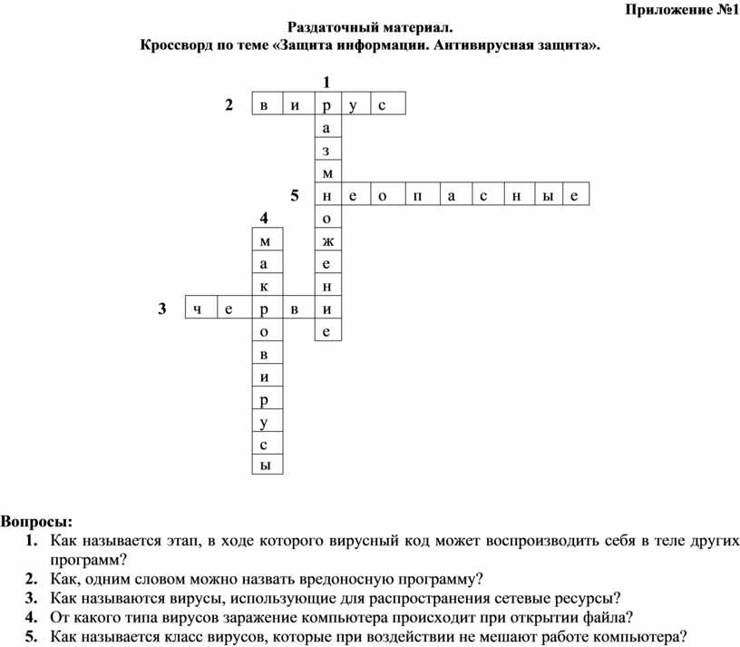 Кроссворд по теме «Защита информации. Антивирусная защита».