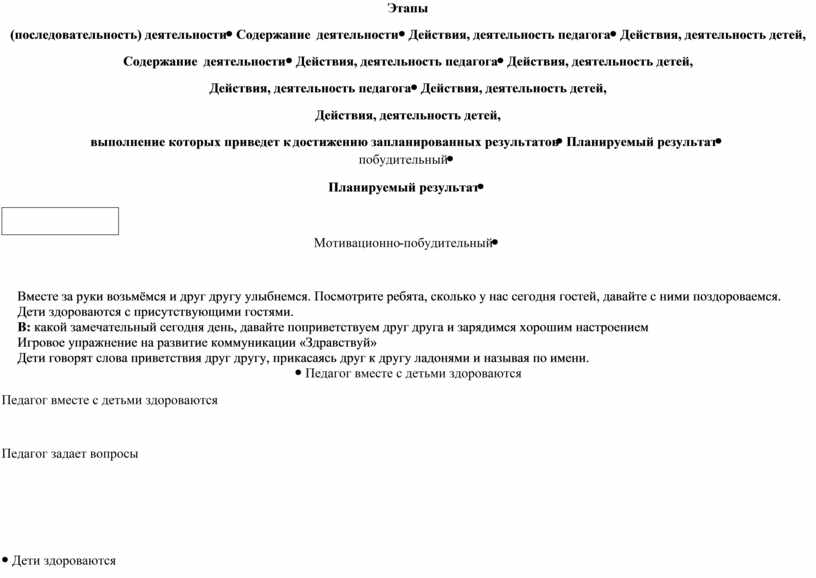 Этапы (последовательность) деятельности |