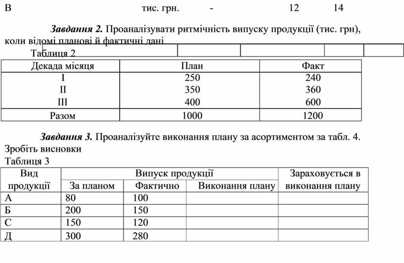 Завдання 2. Проаналізувати ритмічність випуску продукції (тис. грн), |