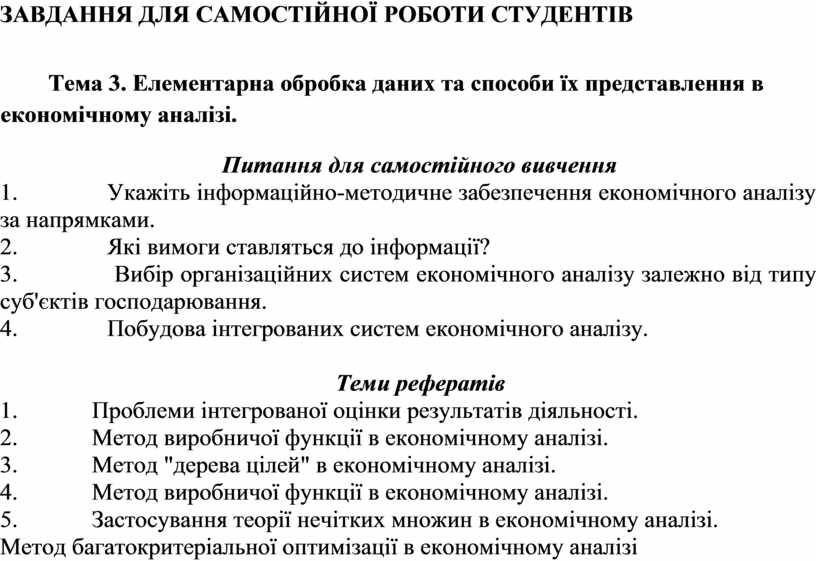 ЗАВДАННЯ ДЛЯ САМОСТІЙНОЇ РОБОТИ СТУДЕНТІВ
