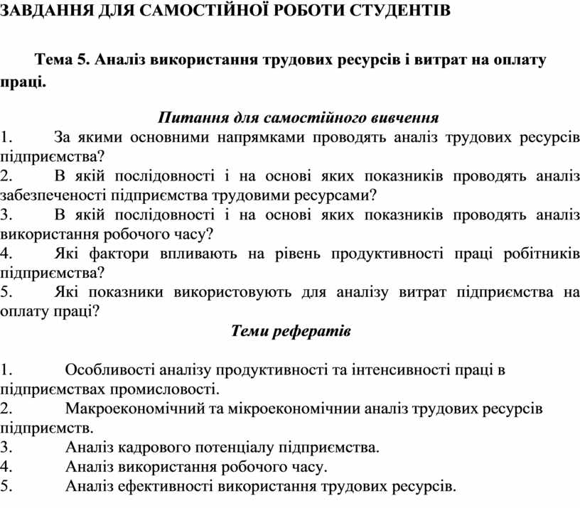 Тема 5. Аналіз використання трудових ресурсів і витрат на оплату праці.