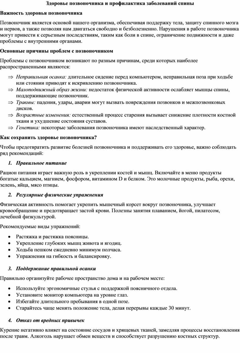 Чтобы предотвратить развитие болезней позвоночника и поддерживать его здоровье, важно соблюдать ряд рекомендаций: