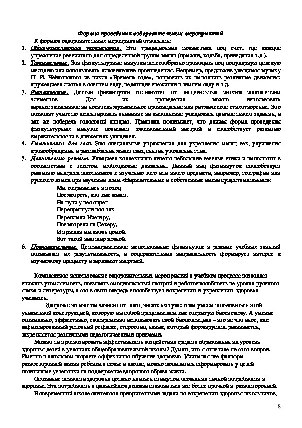 8оптимизации учебного процесса, разработка и внедрение здоровьесберегающих технологий
