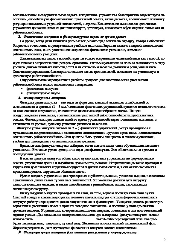 физкультурных минуток повышает эмоциональный настрой и способствует развитию