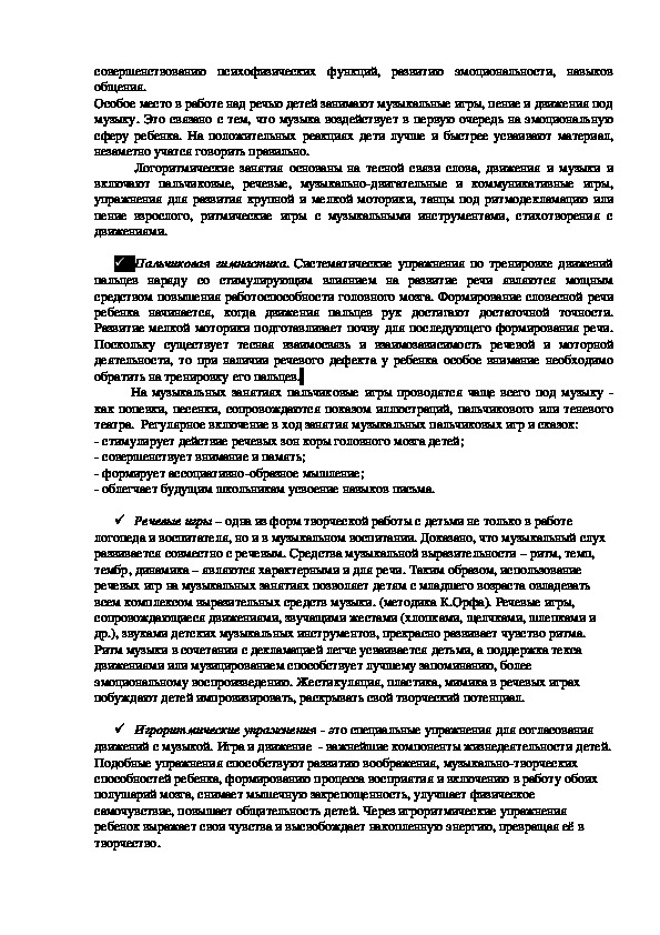 логопеда и воспитателя, но и в музыкальном воспитании. Доказано, что музыкальный слух