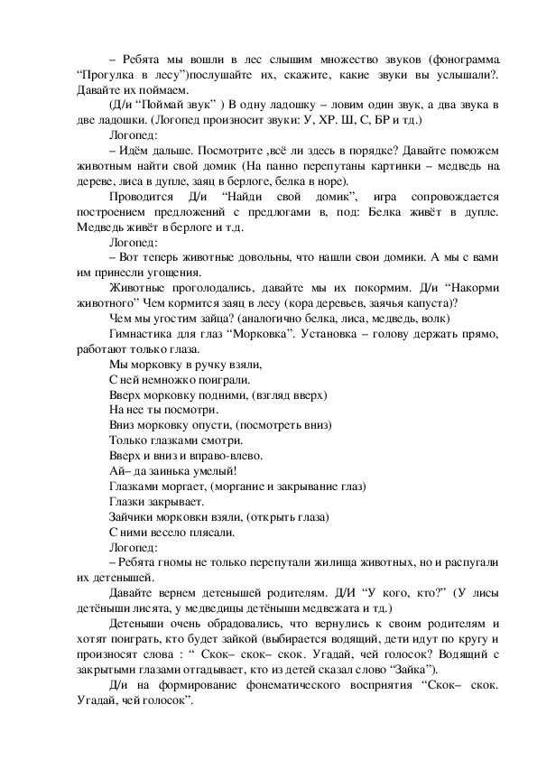 Логопед:– Ребята мы вошли в лес слышим множество звуков (фонограмма