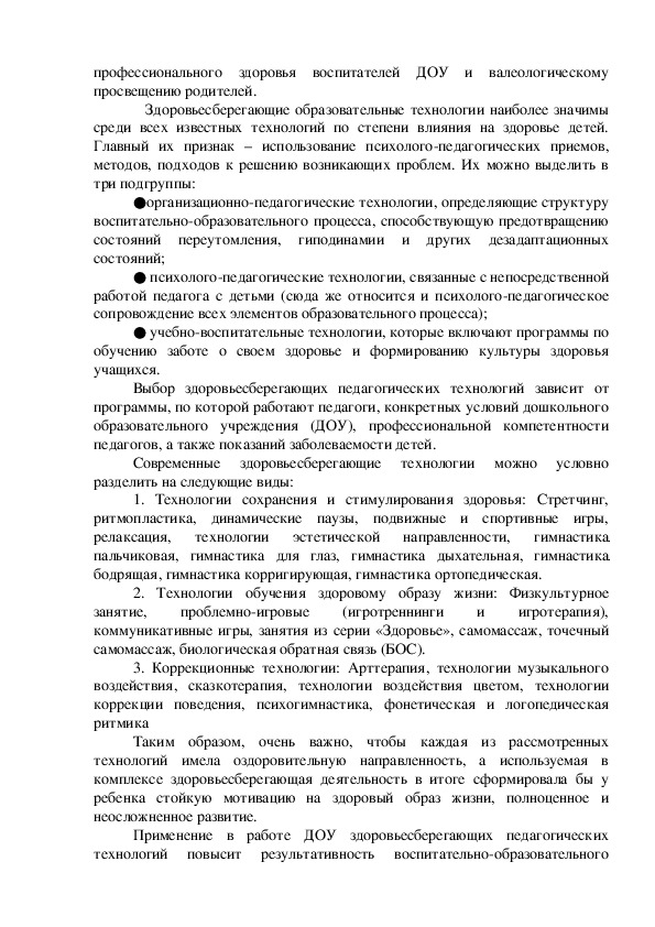 (то есть, собственно, педагогические) и «здоровьесберегающие технологии в