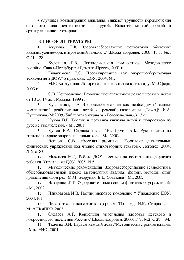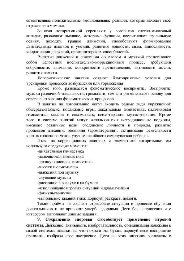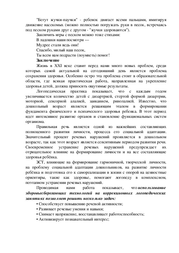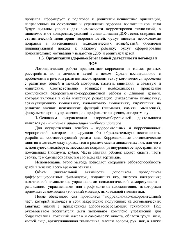 ним можно отнести здоровьесберегающую работу логопедов, дефектологов,