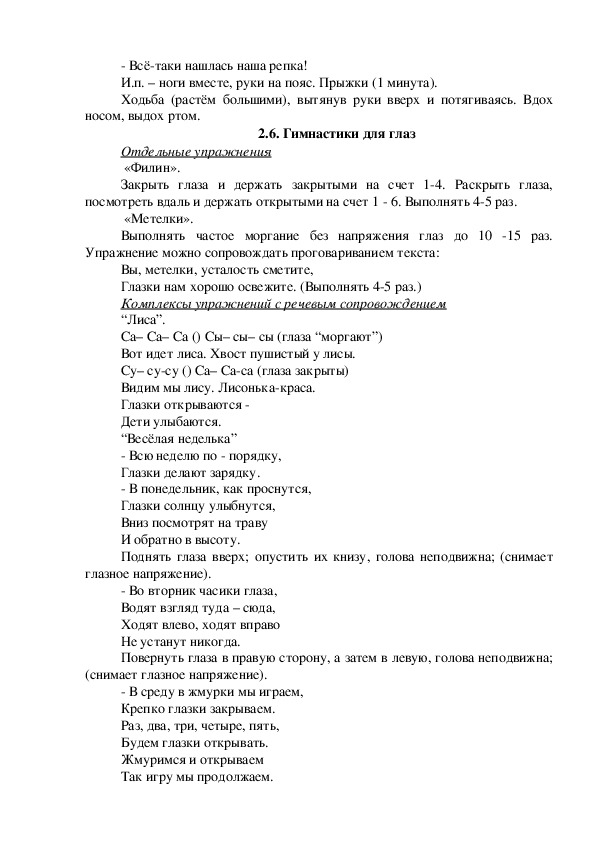 Гимнастика для глаз “Морковка”. Установка – голову держать прямо,