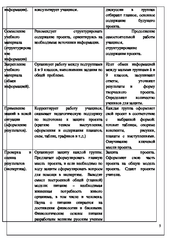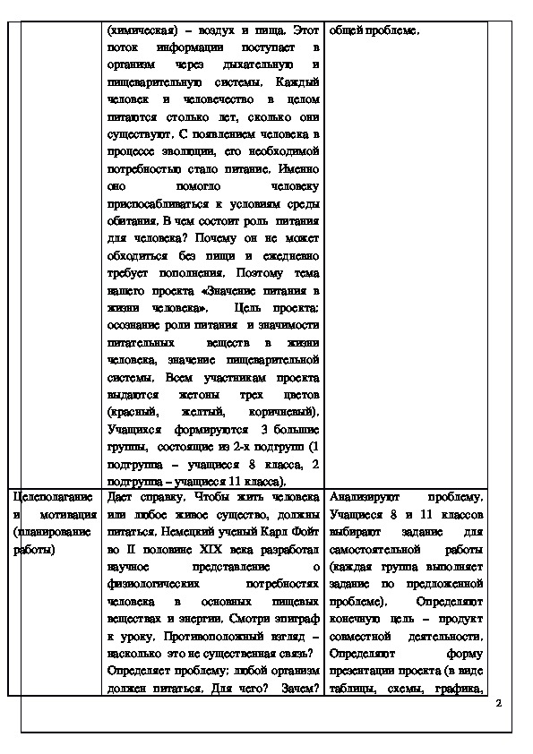Тема урока биологии в 8 классе «Значение питания в жизни человека»