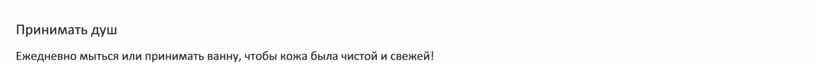 Ежедневно мыться или принимать ванну, чтобы кожа была чистой и свежей!