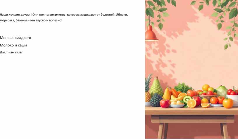 полны витаминов, которые защищают от болезней. Яблоки, морковка, бананы – это