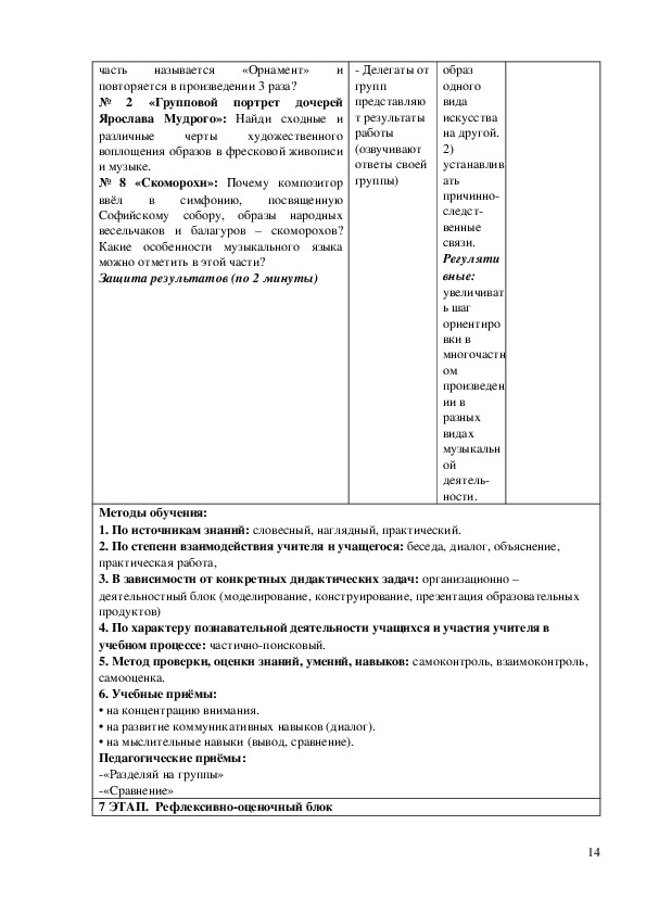 Метод проверки, оценки знаний, умений, навыков: самооценка, рефлексия.