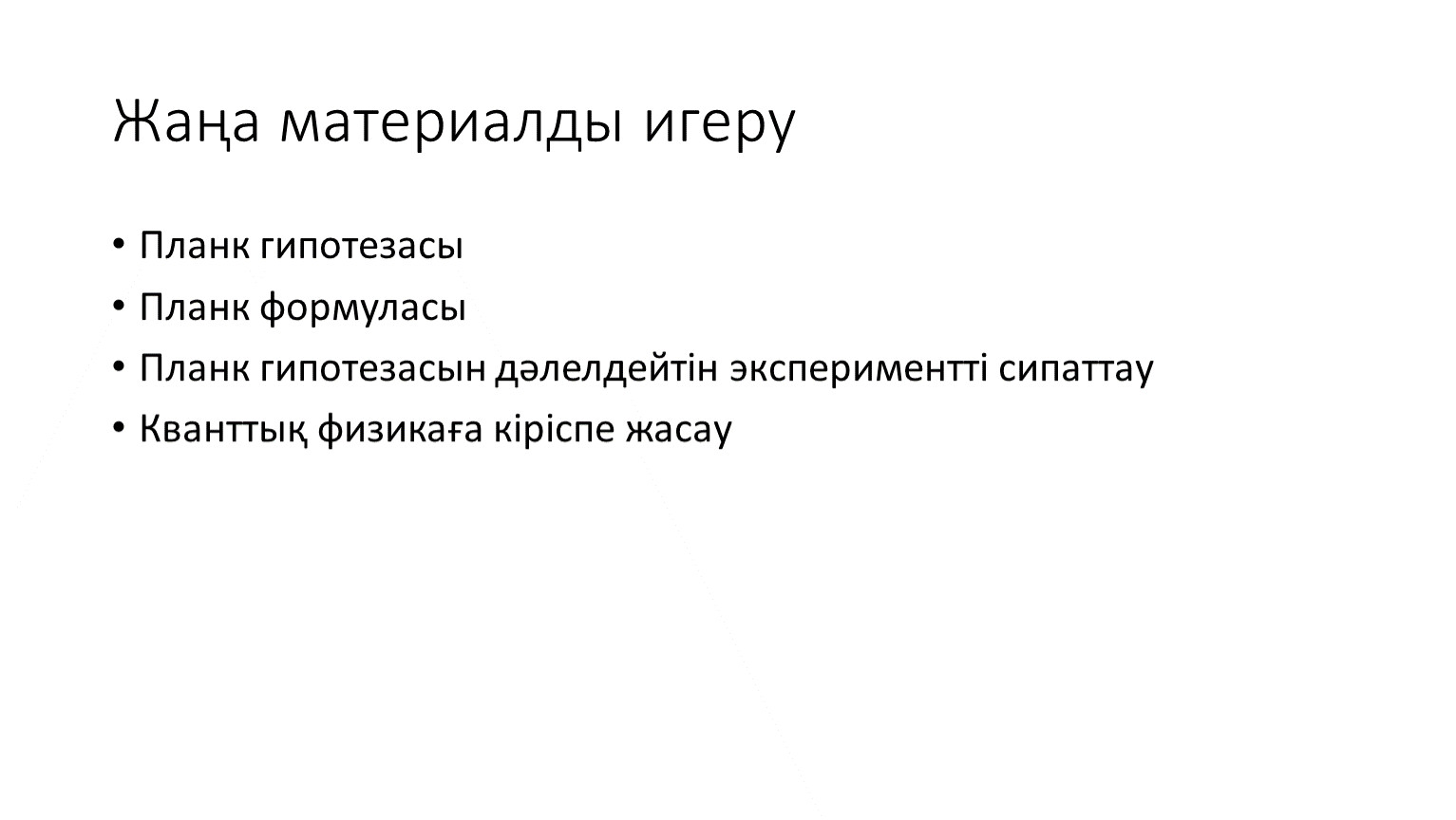 Планк гипотезасын дәлелдейтін экспериментті сипаттау