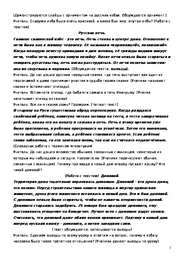 Учитель: 1.Как строили. 2.Как выглядела (орнамент). 3.Внутренний мир избы.
