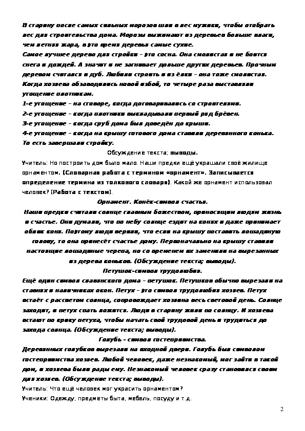 Учитель: Но построить дом было мало. Наши предки ещё украшали своё жилище