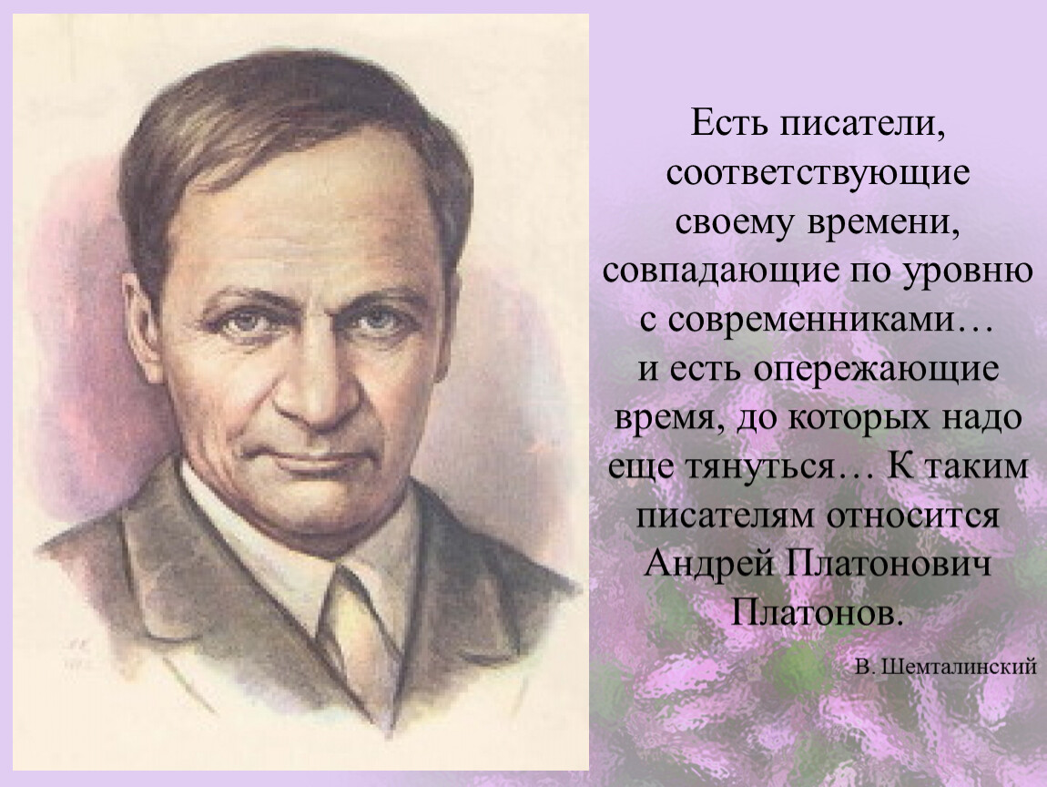Есть писатели, соответствующие своему времени, совпадающие по уровню с современниками… и есть опережающие время, до которых надо еще тянуться… К таким писателям относится Андрей Платонович Платонов. В. Шемталинский