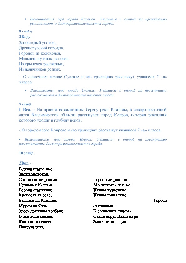 класса.• Вывешивается герб города Киржач. Учащиеся с опорой на презентацию