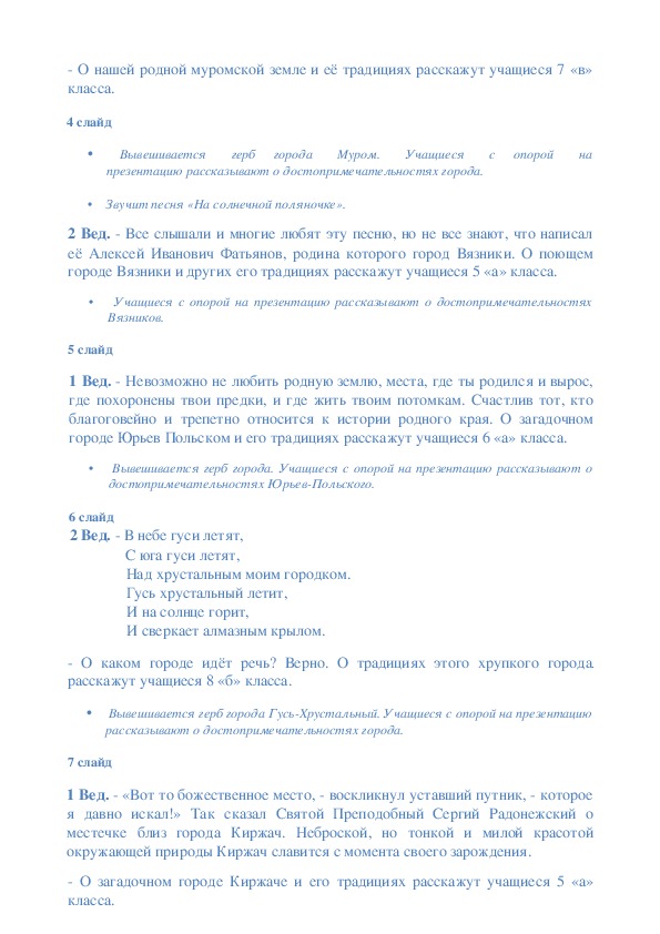 городе Вязники и других его традициях расскажут учащиеся 5 «а» класса.
