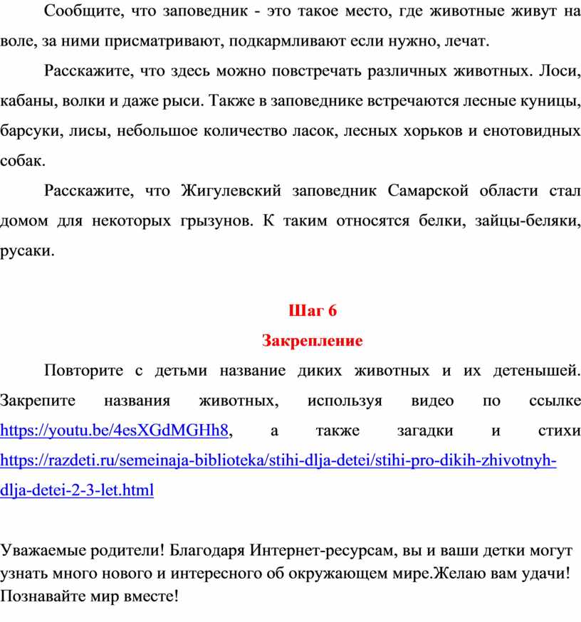 Познакомьте ребёнка с животным миром Жигулёвского заповедника, что находится на территории Самарского края. https://урок.рф/library/zhivotnij_mir_zhigulevskogo_zapovednika_082311.html