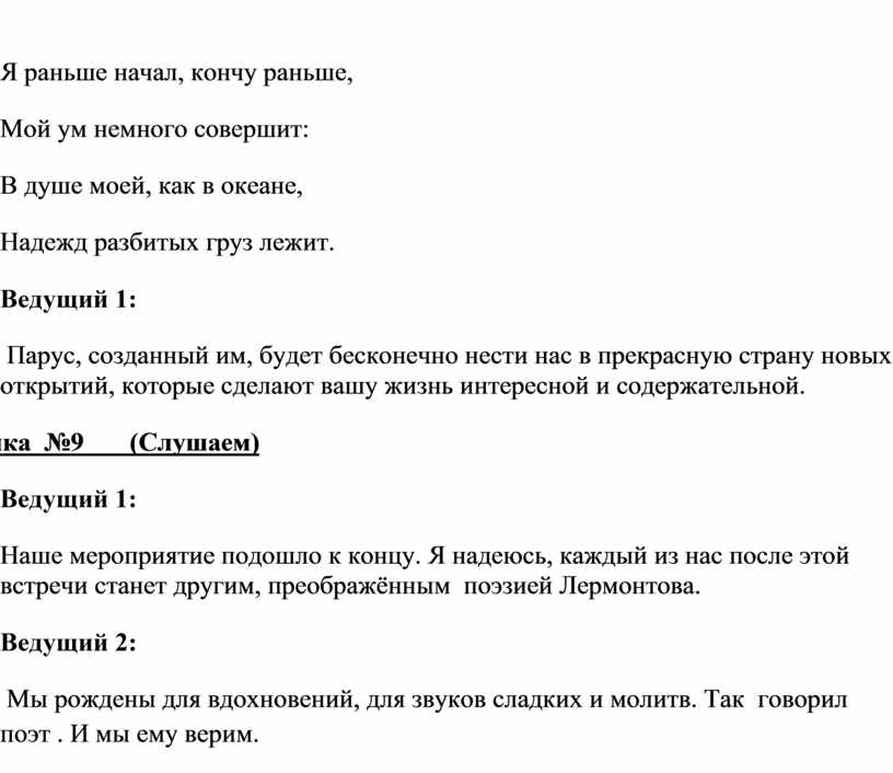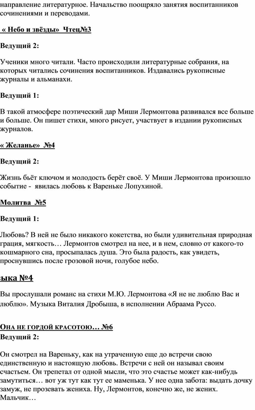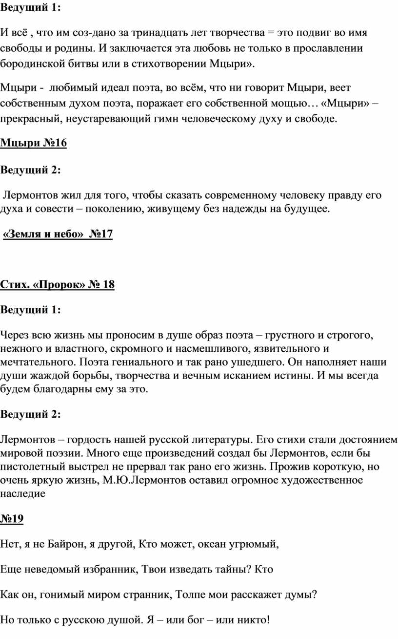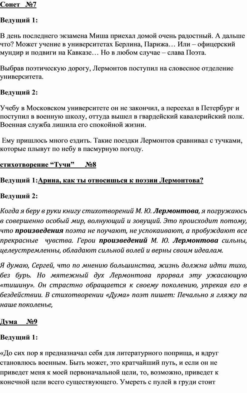 Ведущий 1:Арина, как ты относишься к поэзии Лермонтова?
