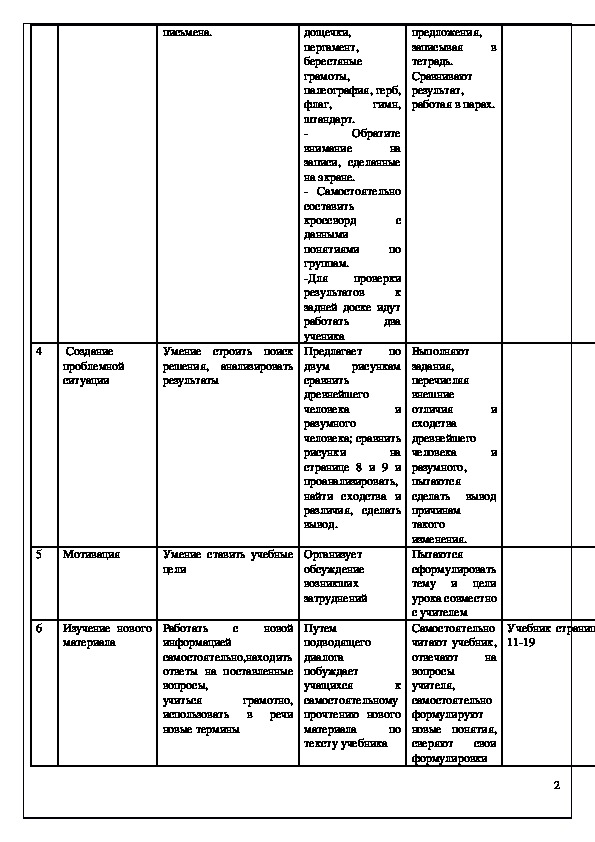 сотрудничества при работе в парах; воспитание интереса к истории как науки