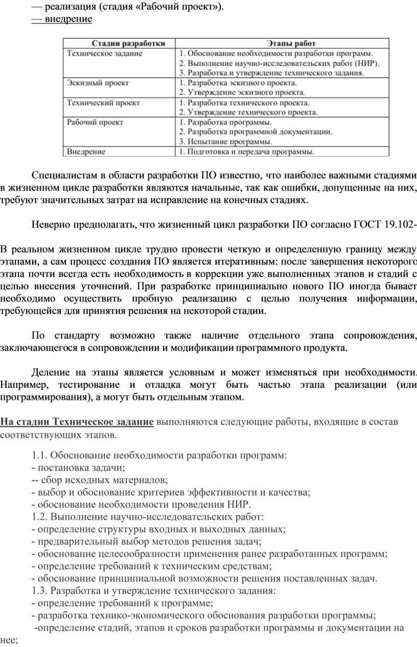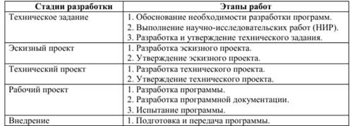 Можно выделить следующие укрупненные этапы разработки ПО с учетом соответствующих стадий разработки по ГОСТ 19.102—77 «Стадии разработки»: