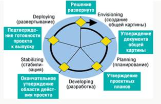 Каждый процесс разделен на набор действий, каждое действие - на набор задач.