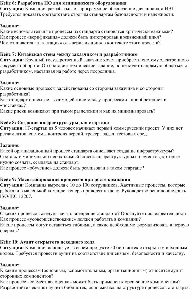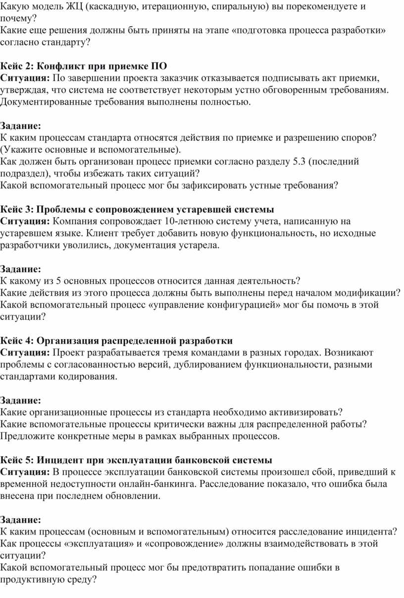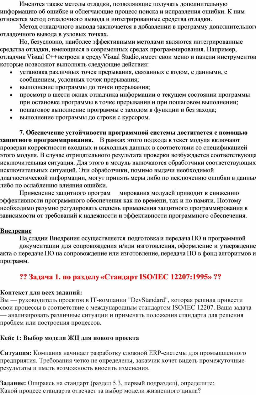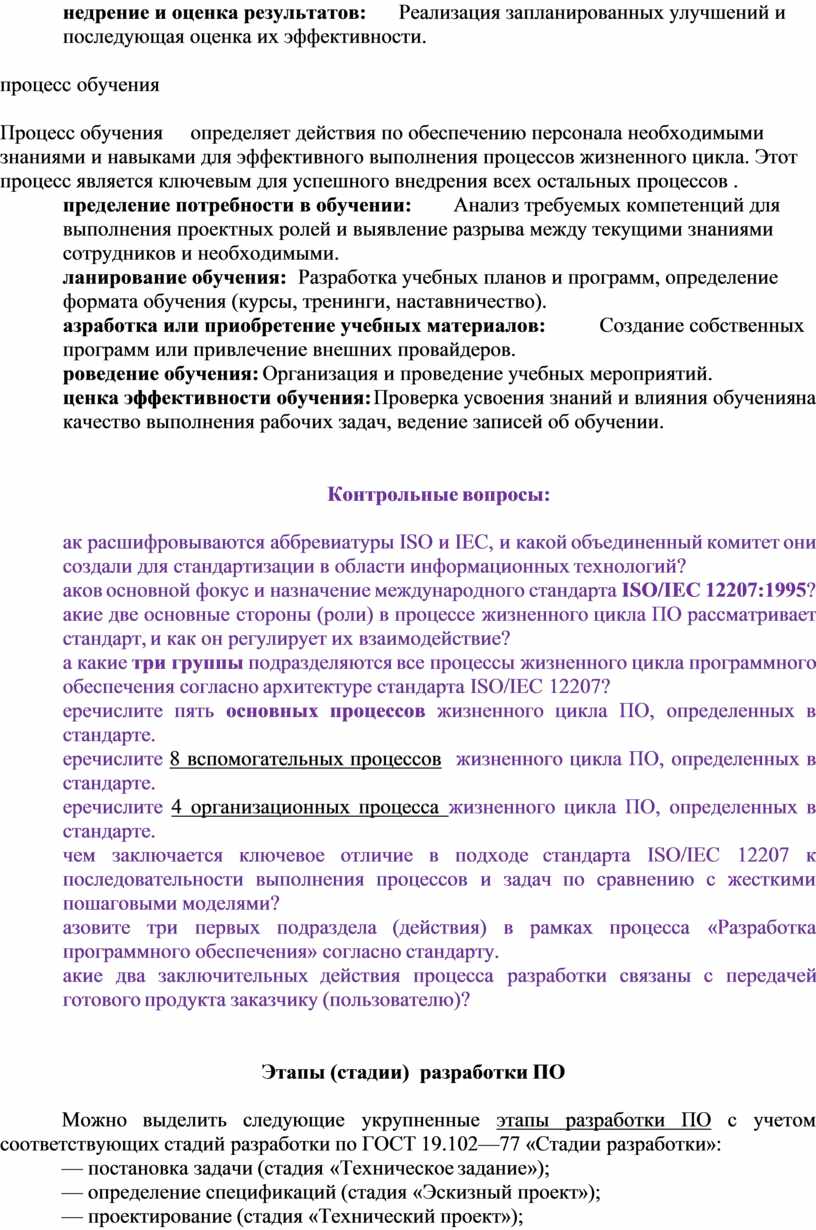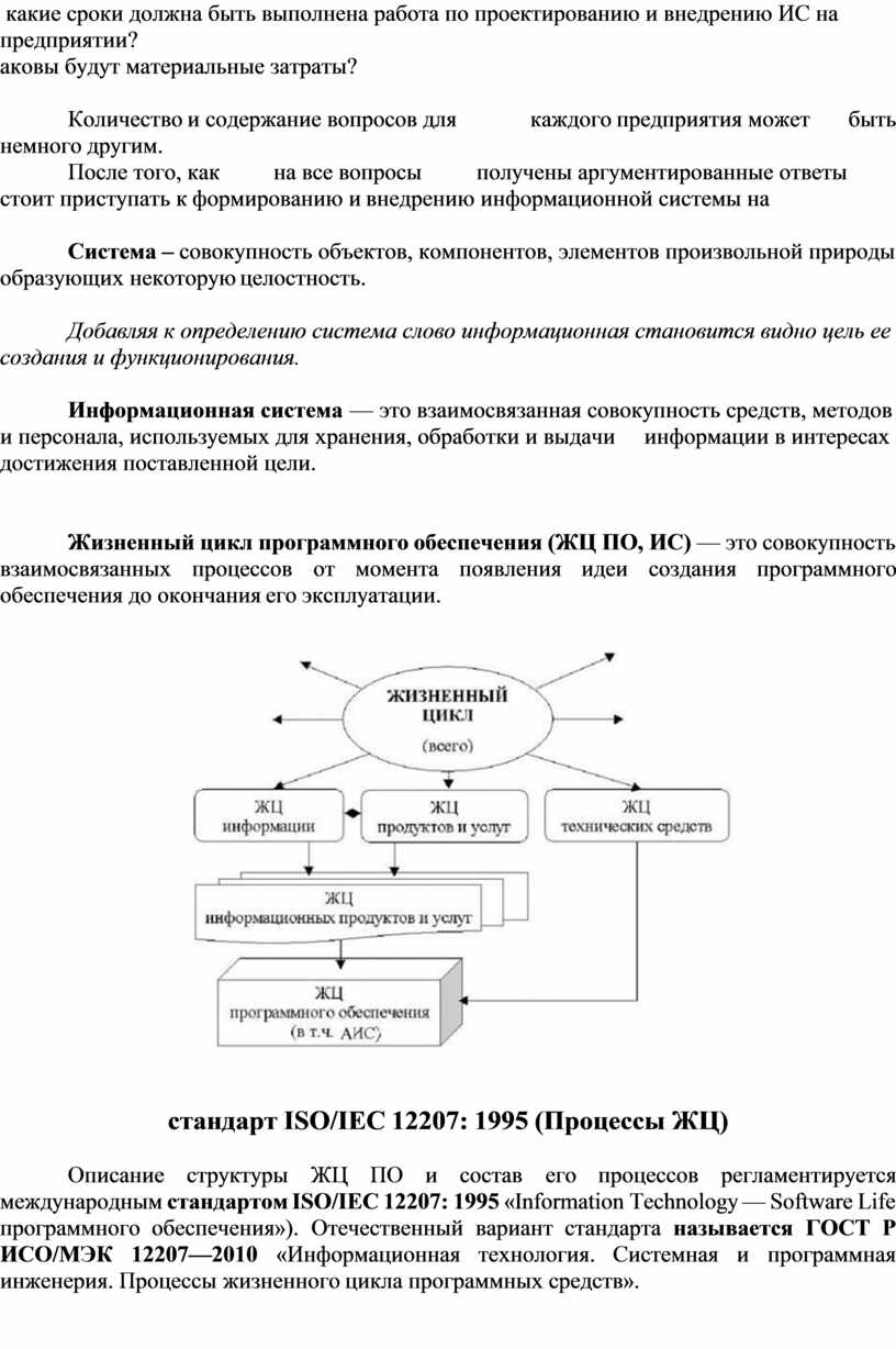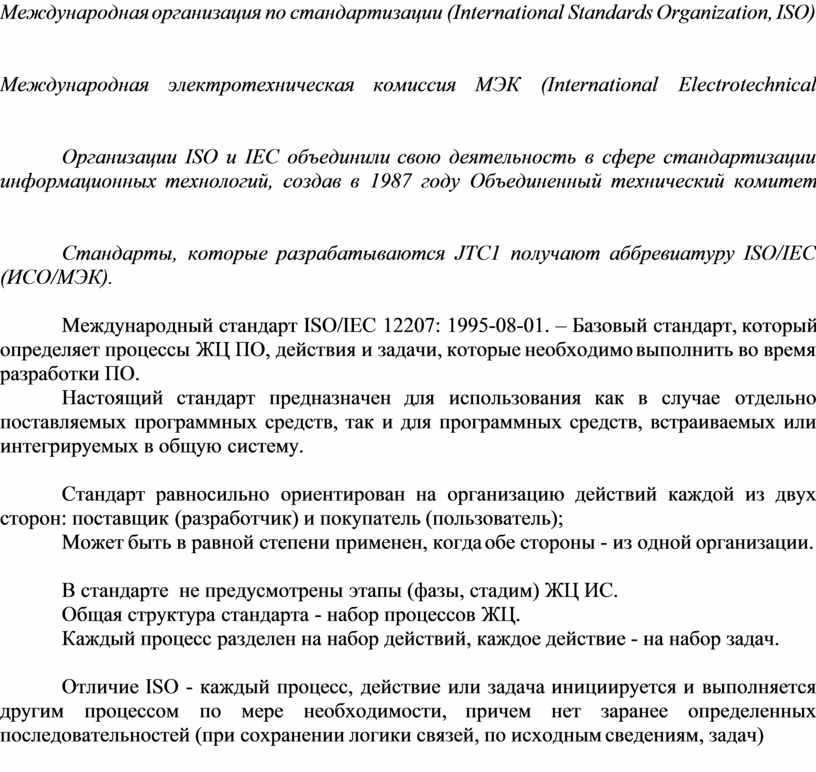 Международный стандарт ISO/IEC 12207: 1995-08-01. – Базовый стандарт, который определяет процессы ЖЦ ПО, действия и задачи, которые необходимо выполнить во время разработки ПО.