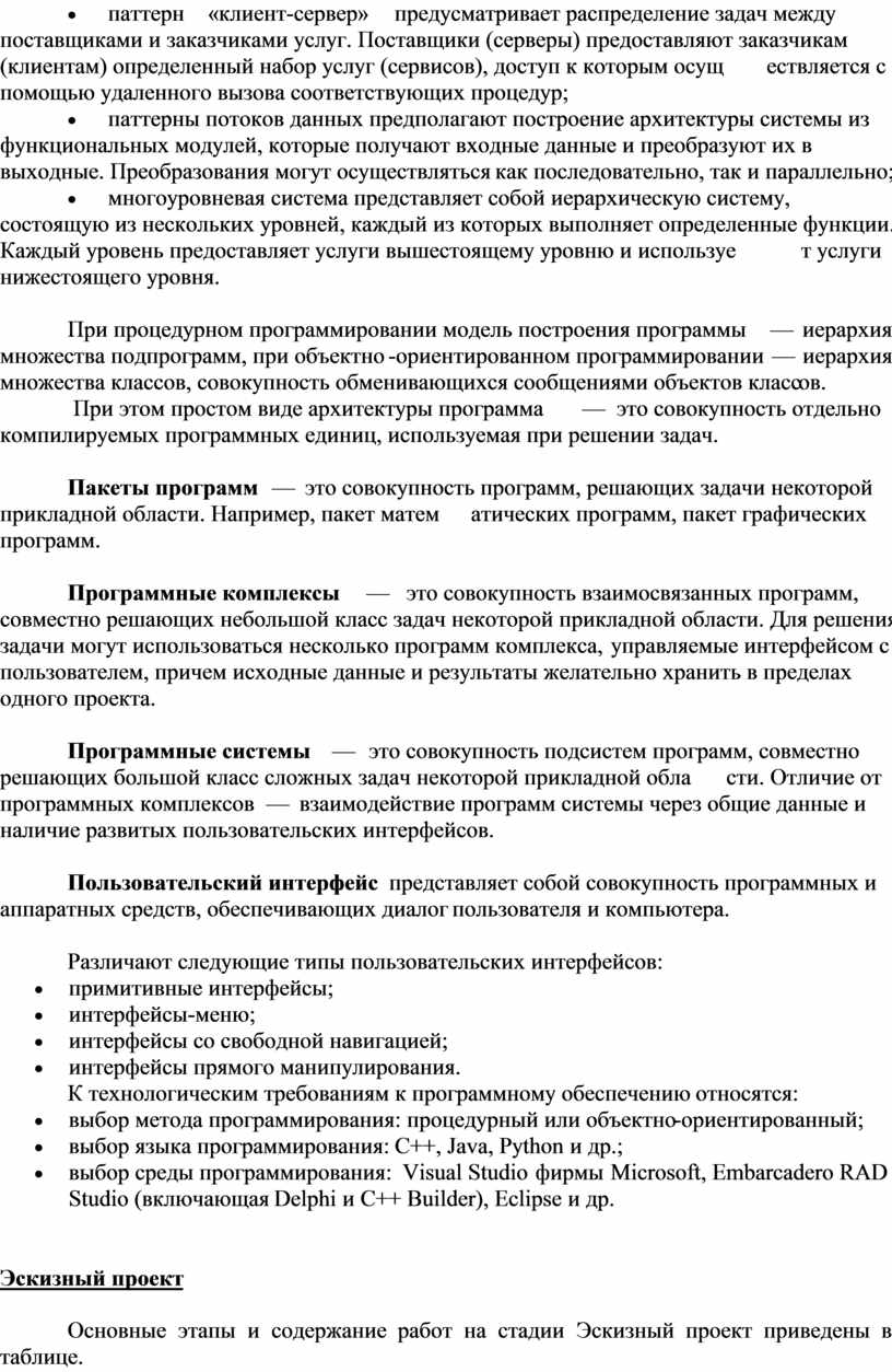 — проектирование архитектуры программного обеспечения — определение структуры программного обеспечения, документирование интерфейсов его компонентов;
