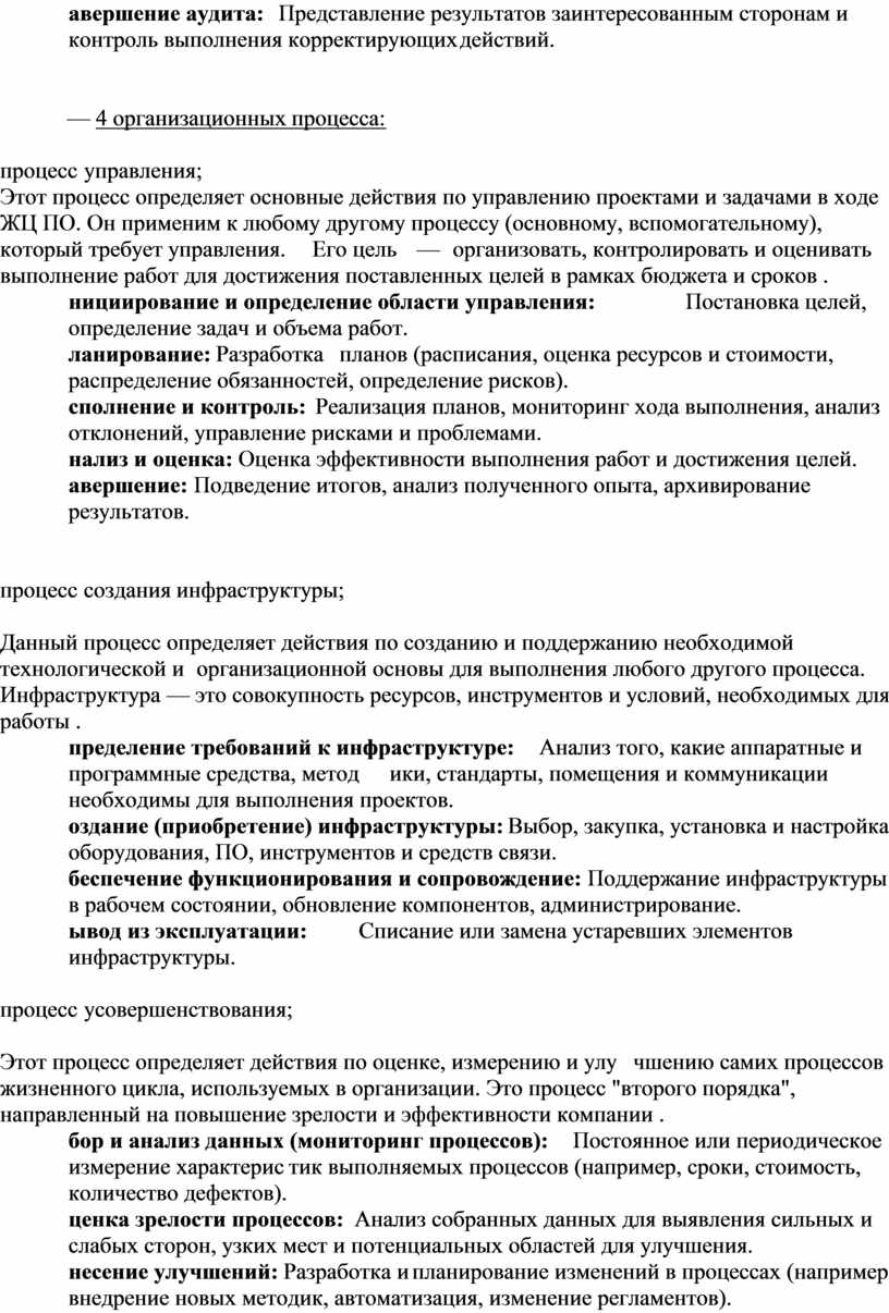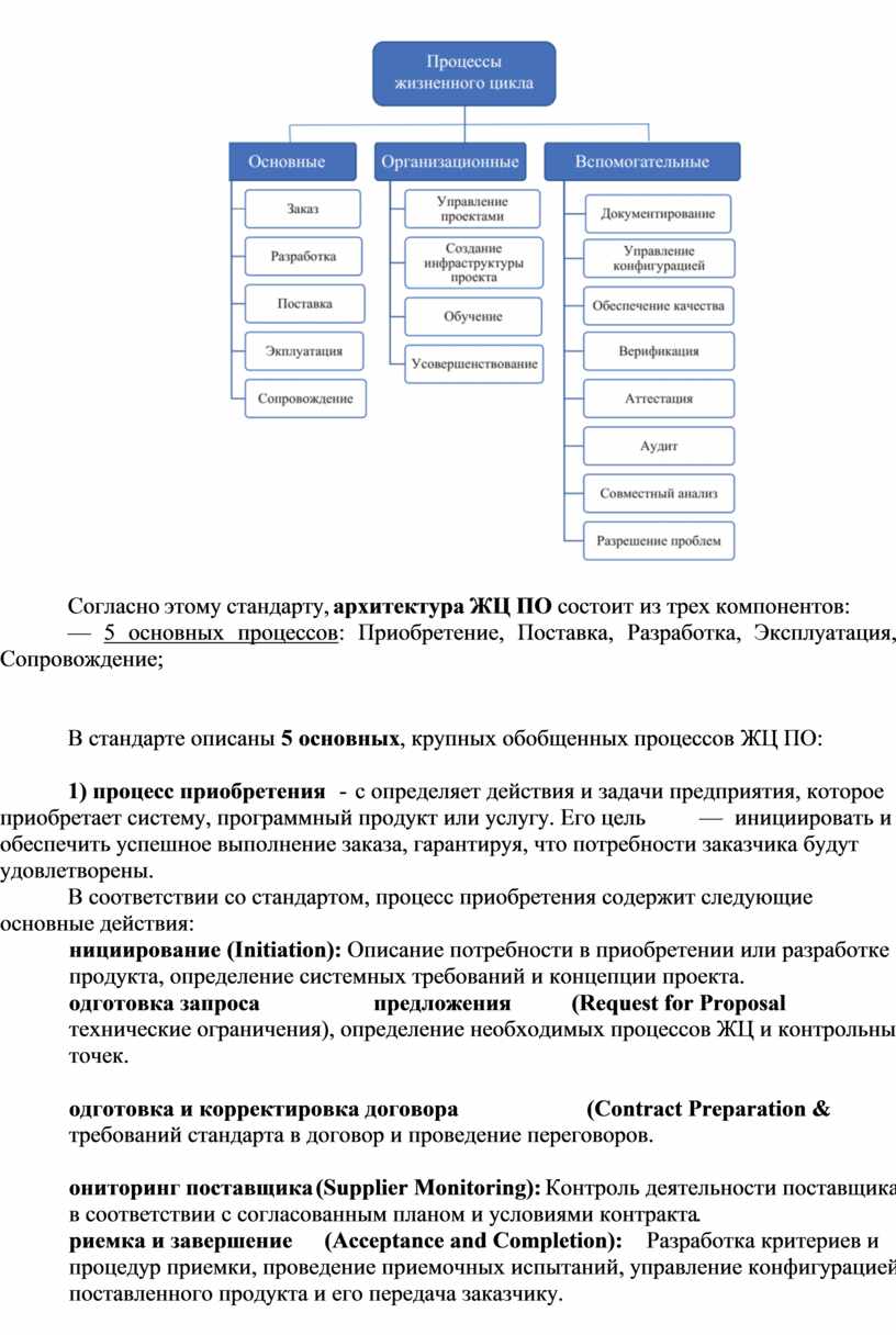— 5 основных процессов: Приобретение, Поставка, Разработка, Эксплуатация, Сопровождение;