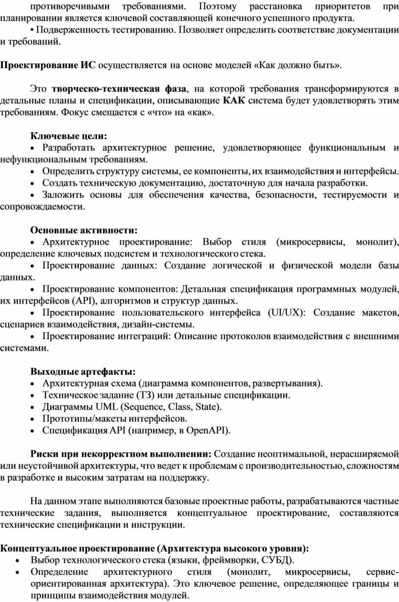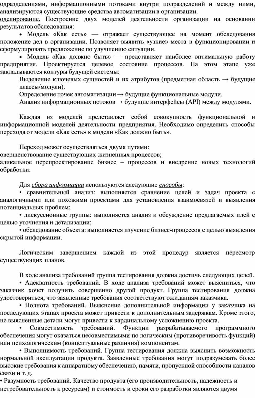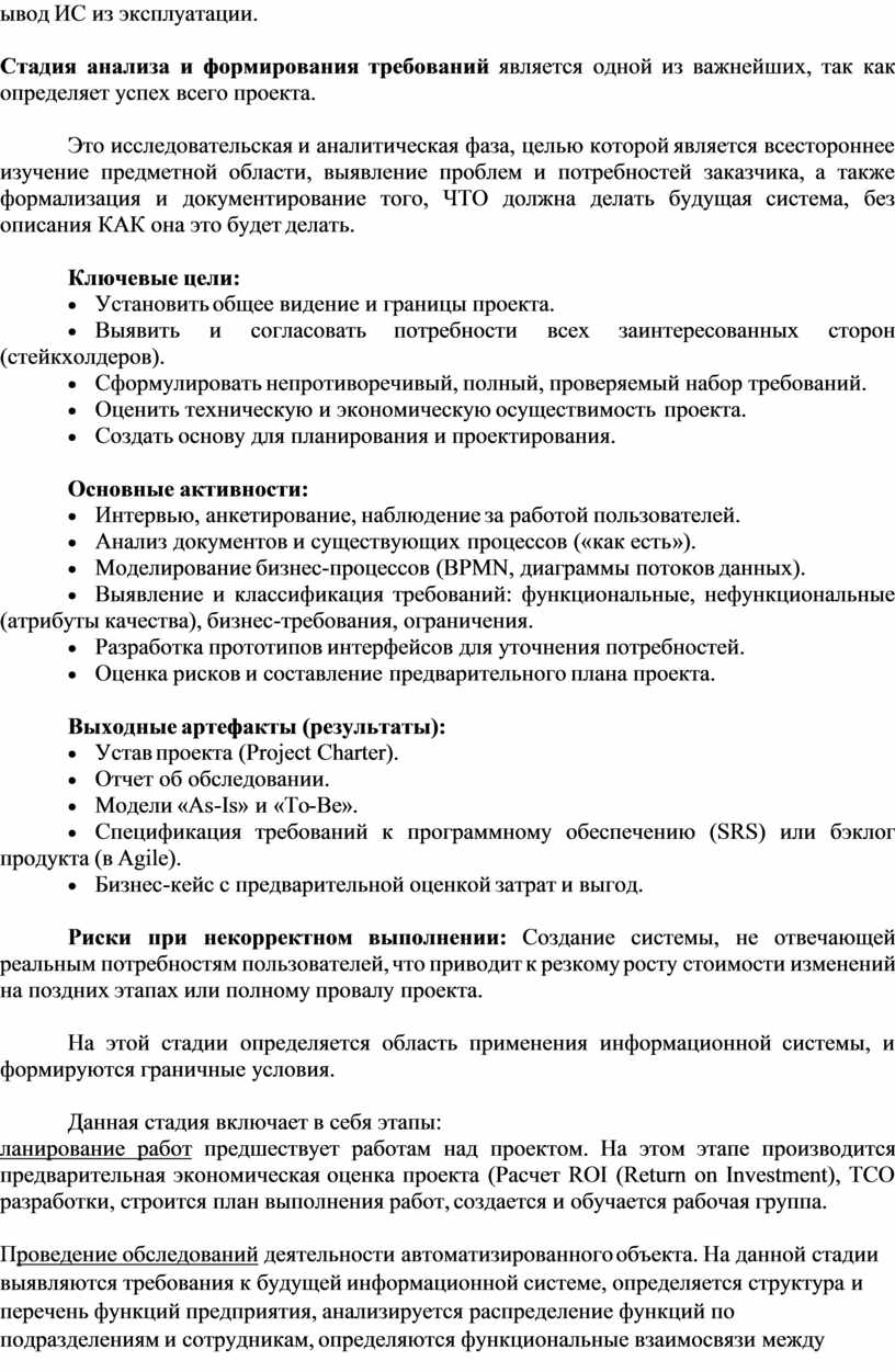 — анализ требований к системе — определение функциональных, эксплуатационных, пользовательских требований;
