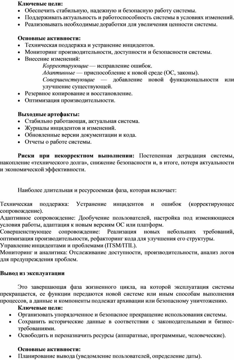 Цель — управление модификациями, поддержание текущего состояния и функциональной пригодности продукта.