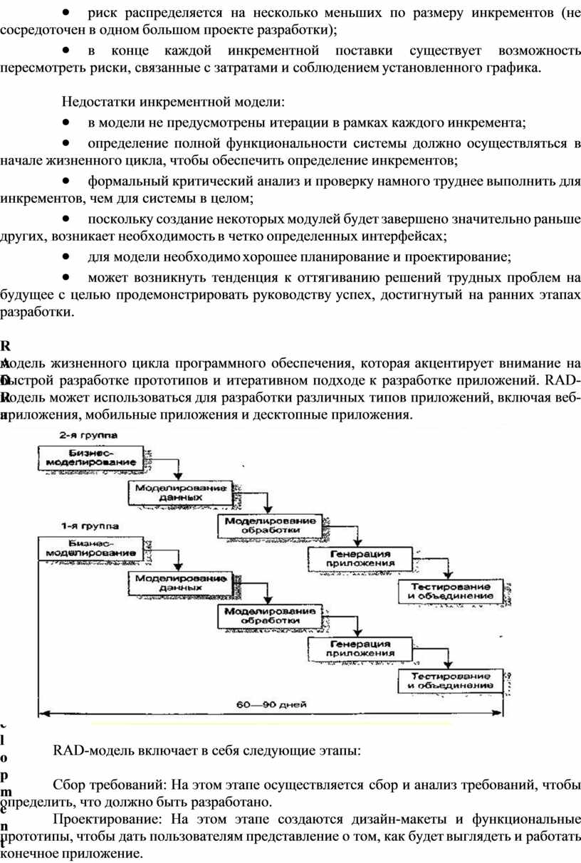 · Если проект ограничен по времени (желательно 60–90 дней): хорошо подойдет RAD (Rapid Application Development). RAD имеет много общего с Agile, но имеет жесткое ограничение по длительности.